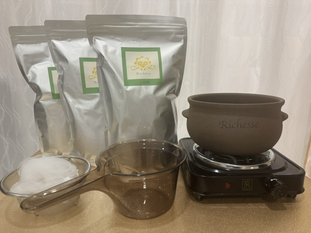 入浴剤(3袋)+黄土壺とコンロのセット